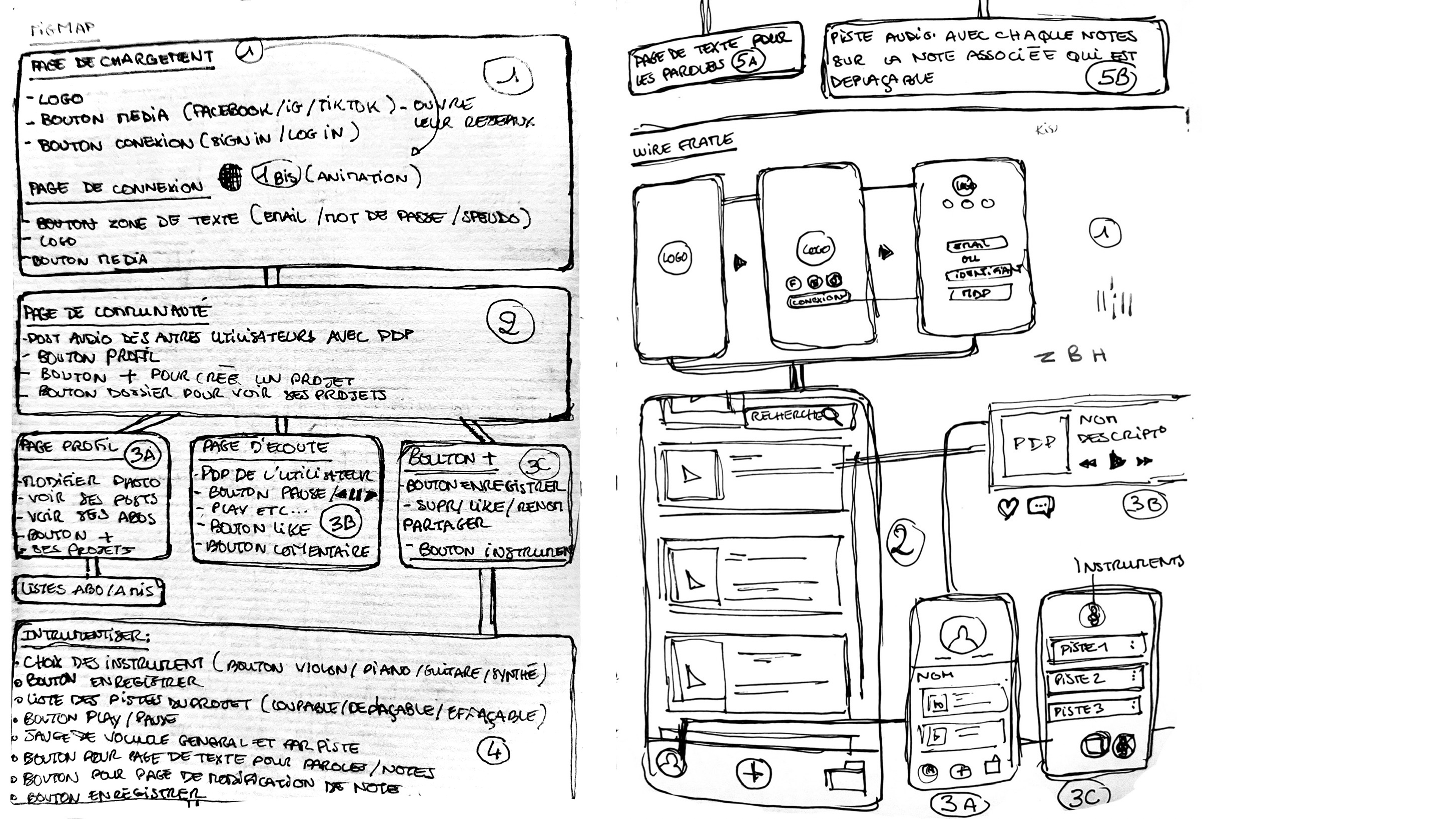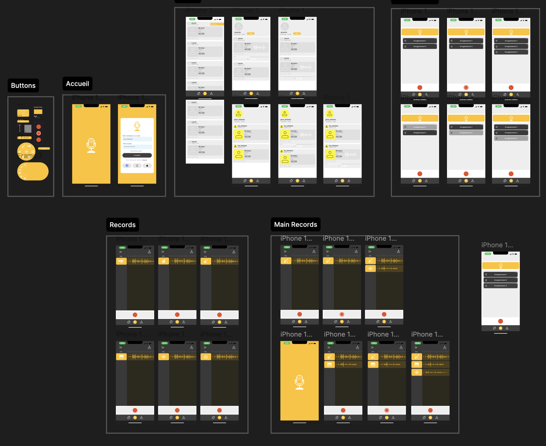 Le Figmap et Wireframe qui m'ont permis de construire mon application, suivis des recherches, du mood board et de mes inspirations. On y retrouve aussi le cahier des charges, les anciens prototypes et le plan de travail sur Figma.